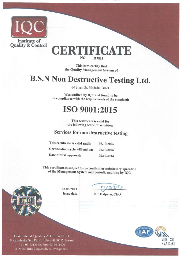 תעודת הסמכה - Institute of Quality & Control